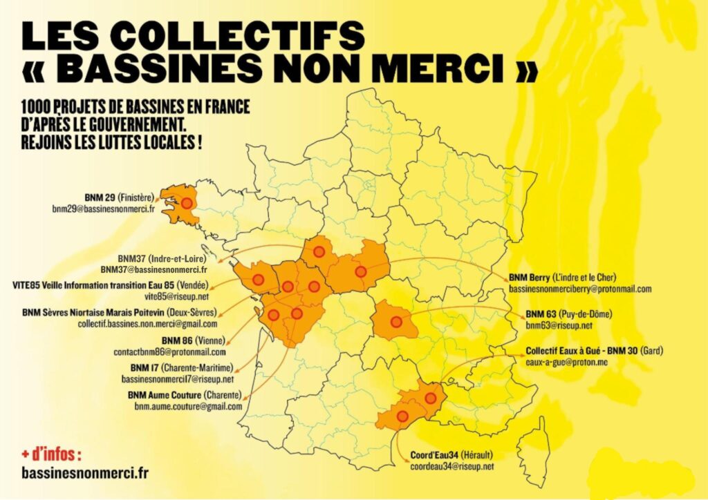 Les luttes sont organisées par différents collectifs qui sont regroupés au sein de Bassines Non Merci